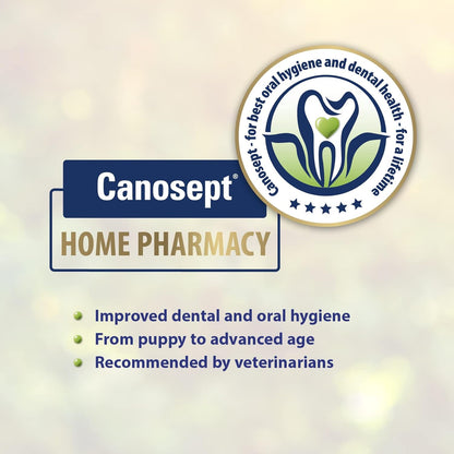 When applying for the first time, put a small amount of Canosept Toothpaste Dental Gel on your finger and invite your dog to taste it. Slowly lift your dog‘s lips and rub the toothpaste along the gum line and teeth. When the dog is comfortable, apply a pea-sized amount of toothpaste to the Canosept Dental Care Finger Brush or Canosept 3-Headed Toothbrush. For best results, allow no food or water for ½ hour after application. Use several times a week. Suitable for puppies from 4 months of age.