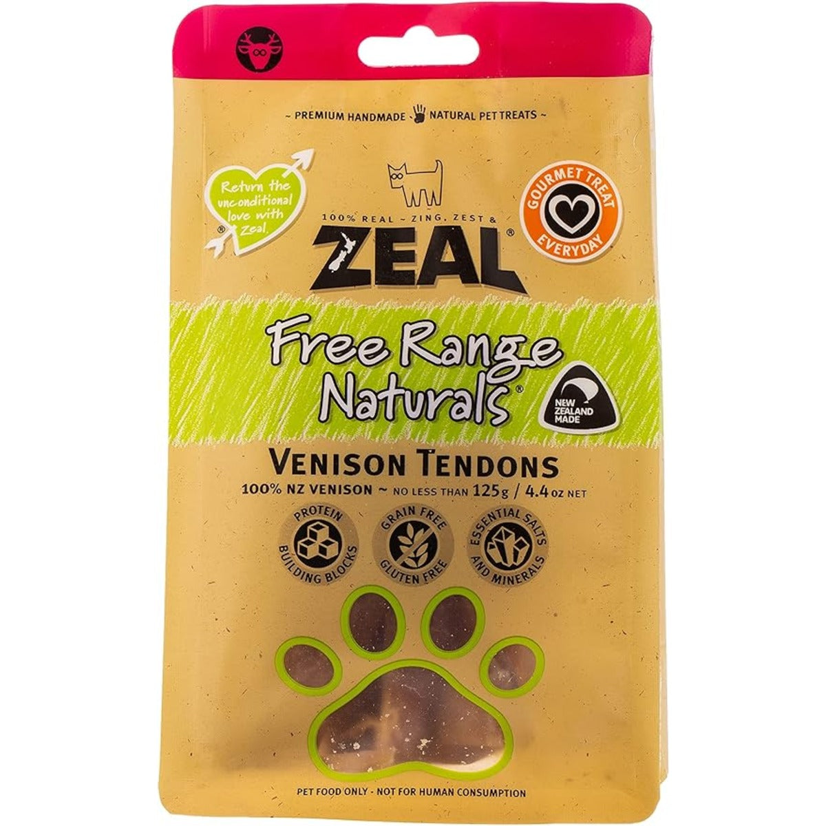 Zeal Free Range Dried Venison Tendons offer a natural and delightful treat for your beloved canine companion. Sourced from free-range New Zealand deer, these tendons provide a pure and healthy snack for dogs of all sizes and ages.
